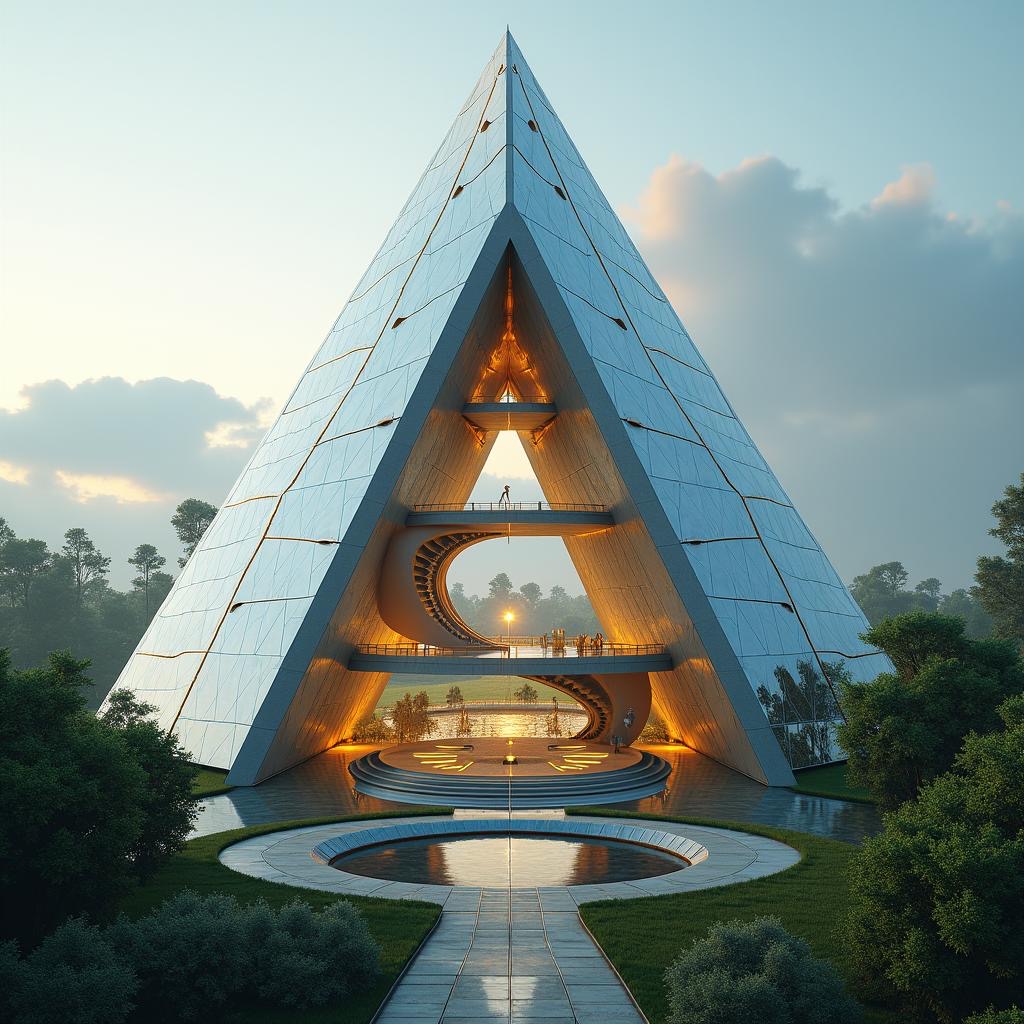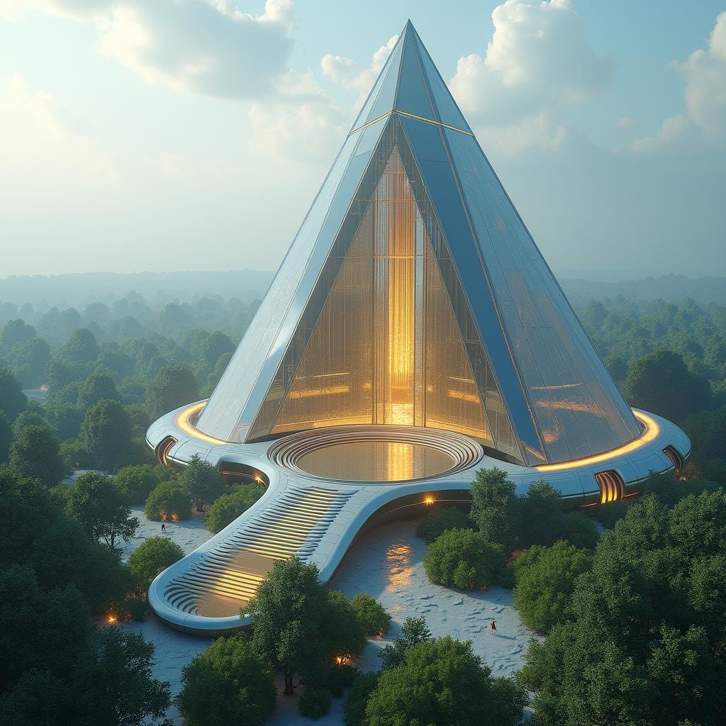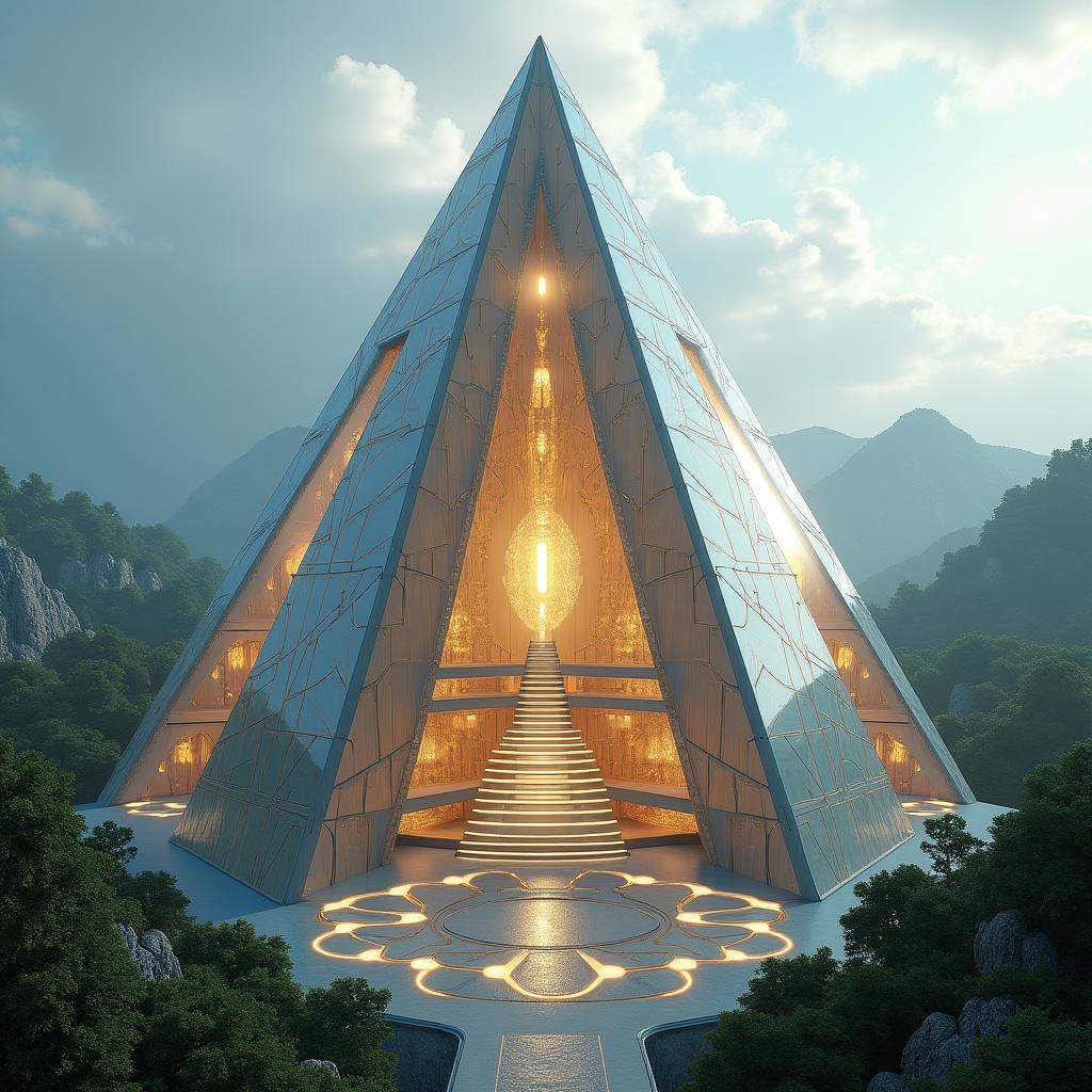 - The Paradox of Perfection: The building itself would embody the philosophical concept of “The Parallax Sanctuary,” where questions are raised rather than answered. Visitors would be encouraged to explore the contradictions between ancient wisdom and modern technology. The pyramid, as a vessel for energy, would not resolve the tension between nature and technology, but provide a space where humanity can contemplate its role in the universe and its potential to create a harmonious, balanced future.