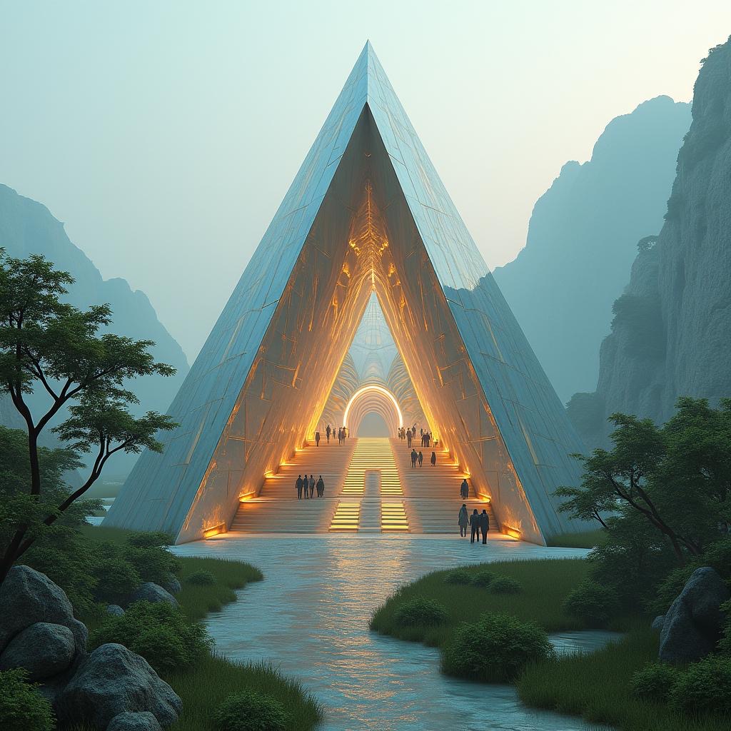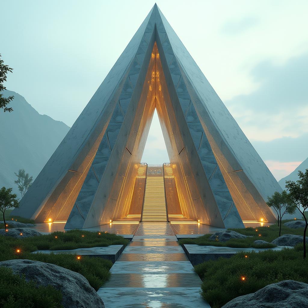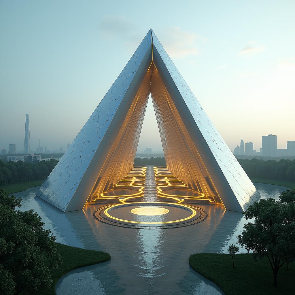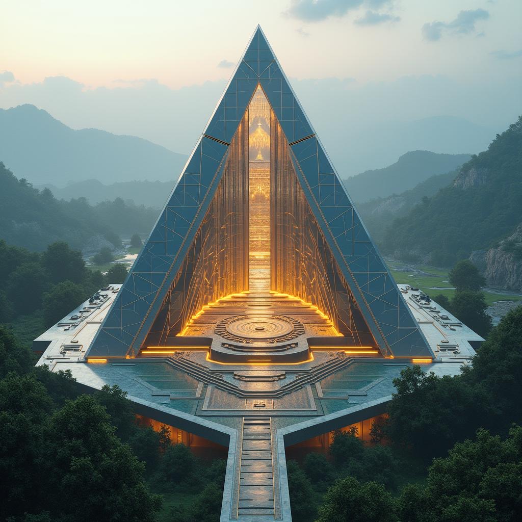 - The Paradox of Perfection: The building itself would embody the philosophical concept of “The Parallax Sanctuary,” where questions are raised rather than answered. Visitors would be encouraged to explore the contradictions between ancient wisdom and modern technology. The pyramid, as a vessel for energy, would not resolve the tension between nature and technology, but provide a space where humanity can contemplate its role in the universe and its potential to create a harmonious, balanced future.