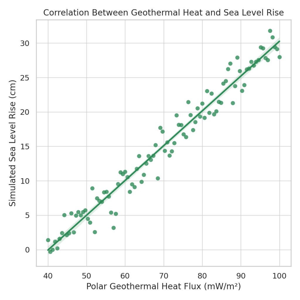 Figure 3 – Hypothetical correlation between elevated polar geothermal heat and rising sea levels. Increased basal melting may accelerate coastal submersion.